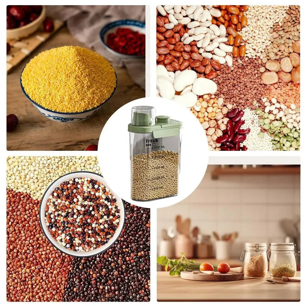 The Airtight Container with Dispensing and Measuring Spout is the ideal solution for practical and efficient kitchen organization. With a smart design, this multifunctional container offers protection for storing a variety of items, from grains and dry ingredients to liquids like milk.